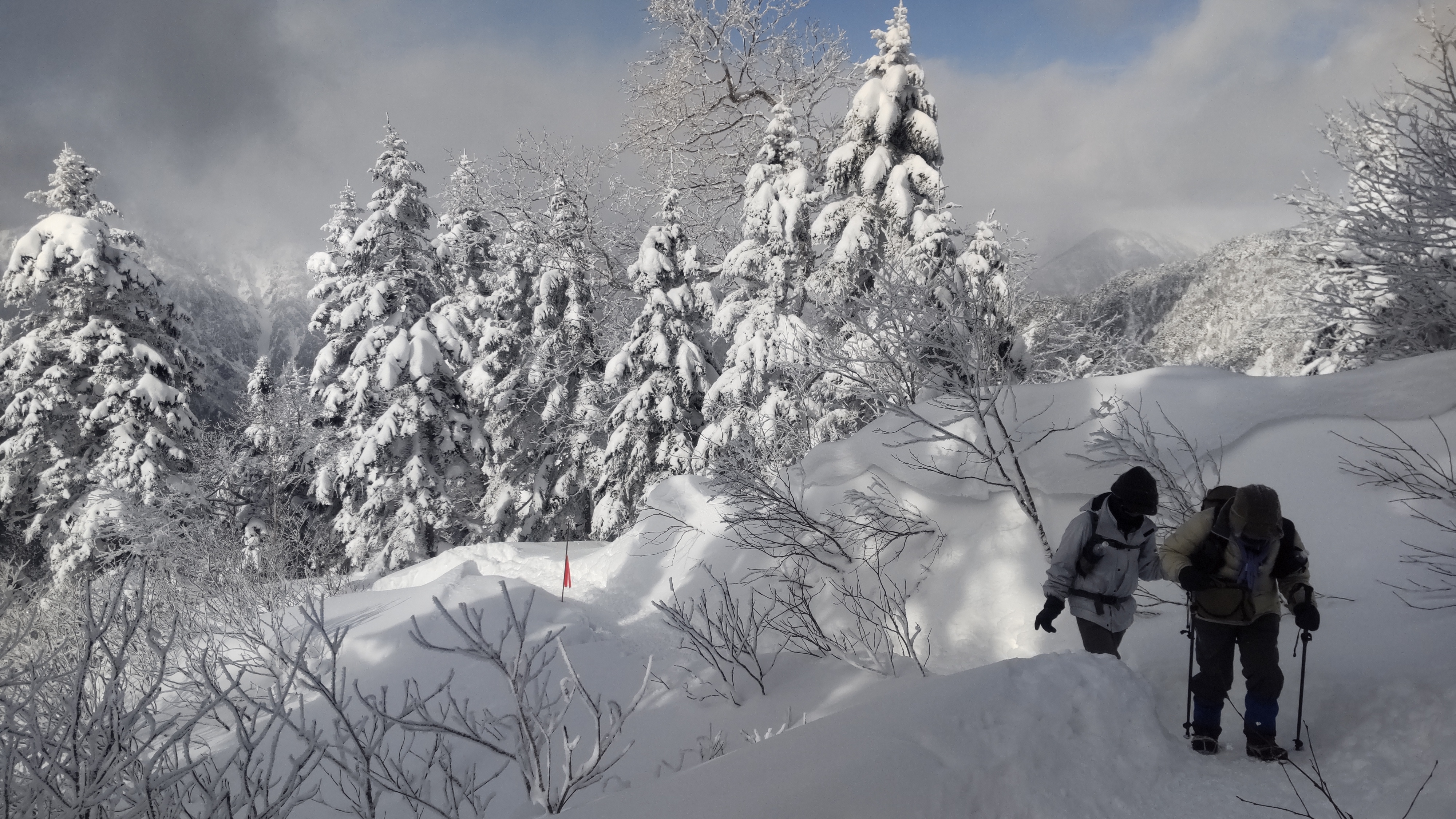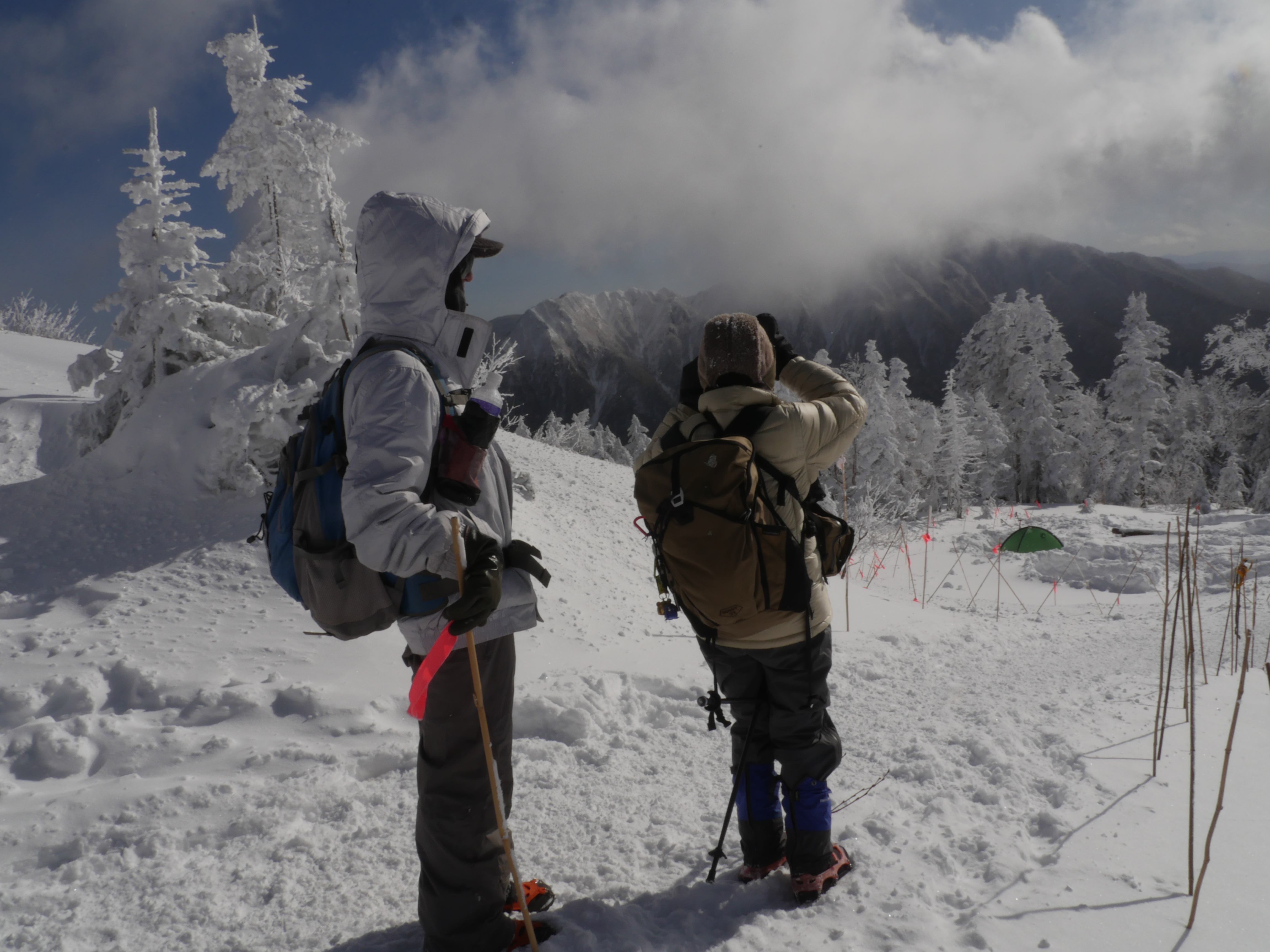 露天から見える山は雪・霧氷で真っ白! |