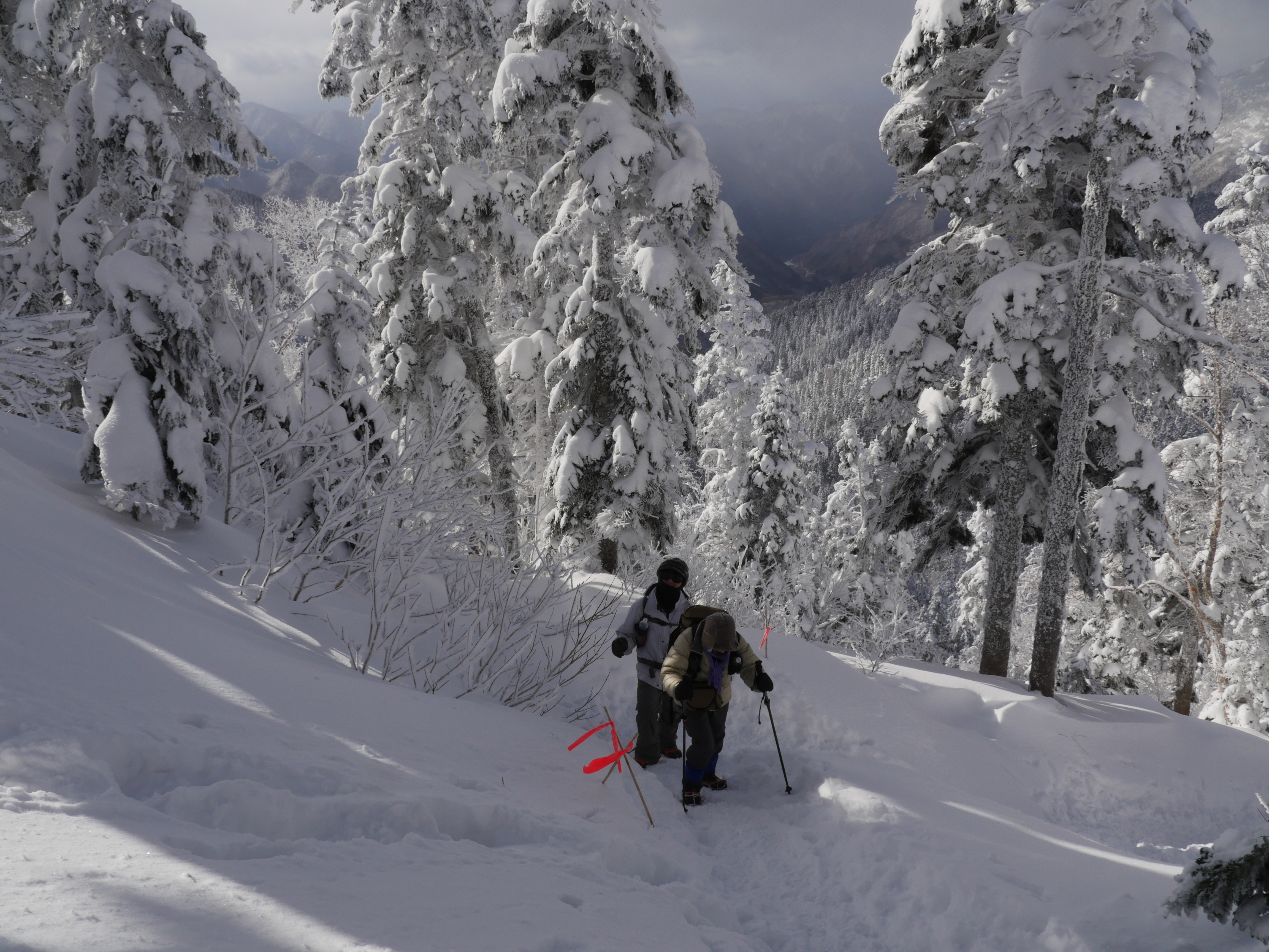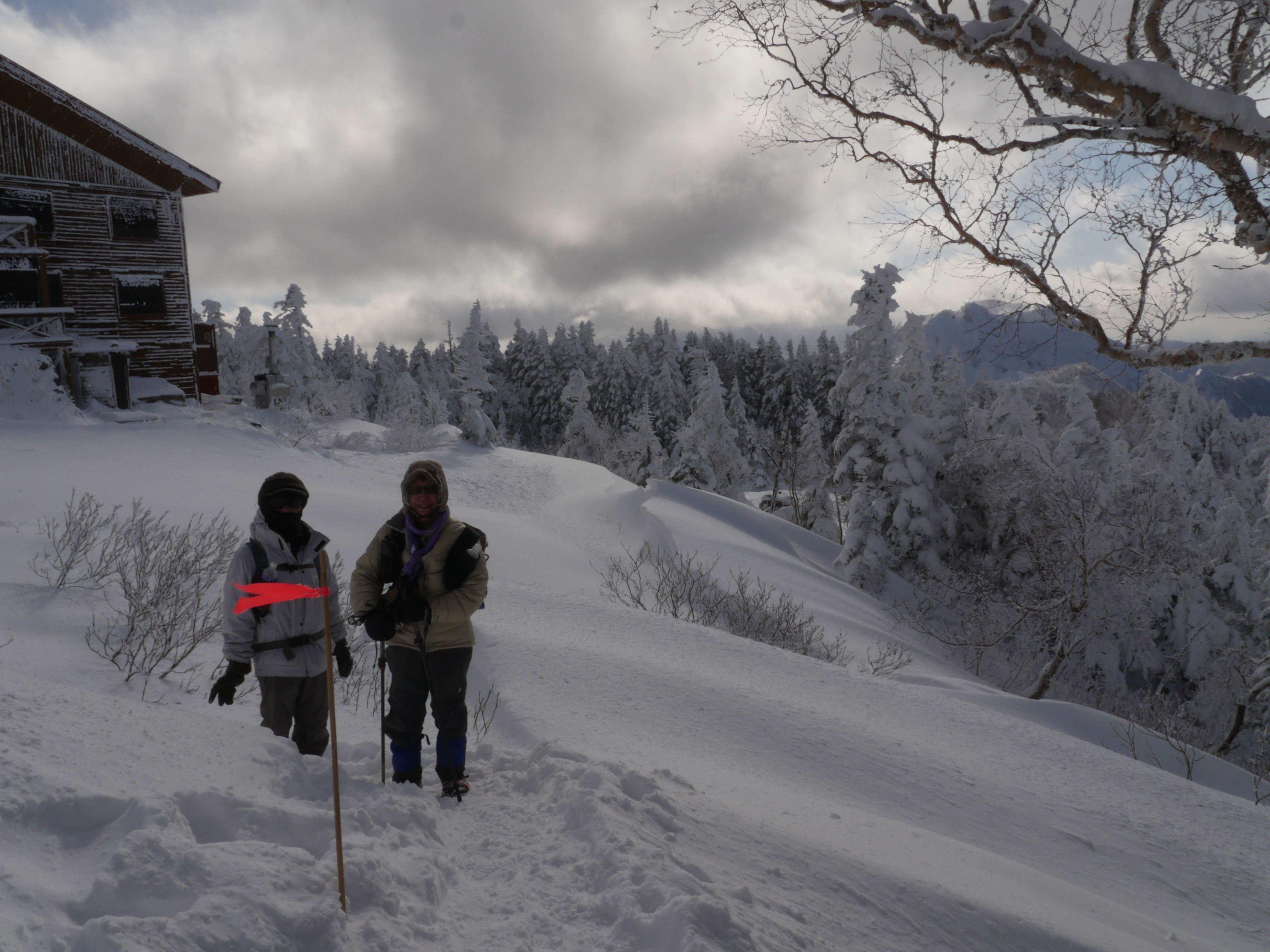 露天から見える山は雪・霧氷で真っ白! |