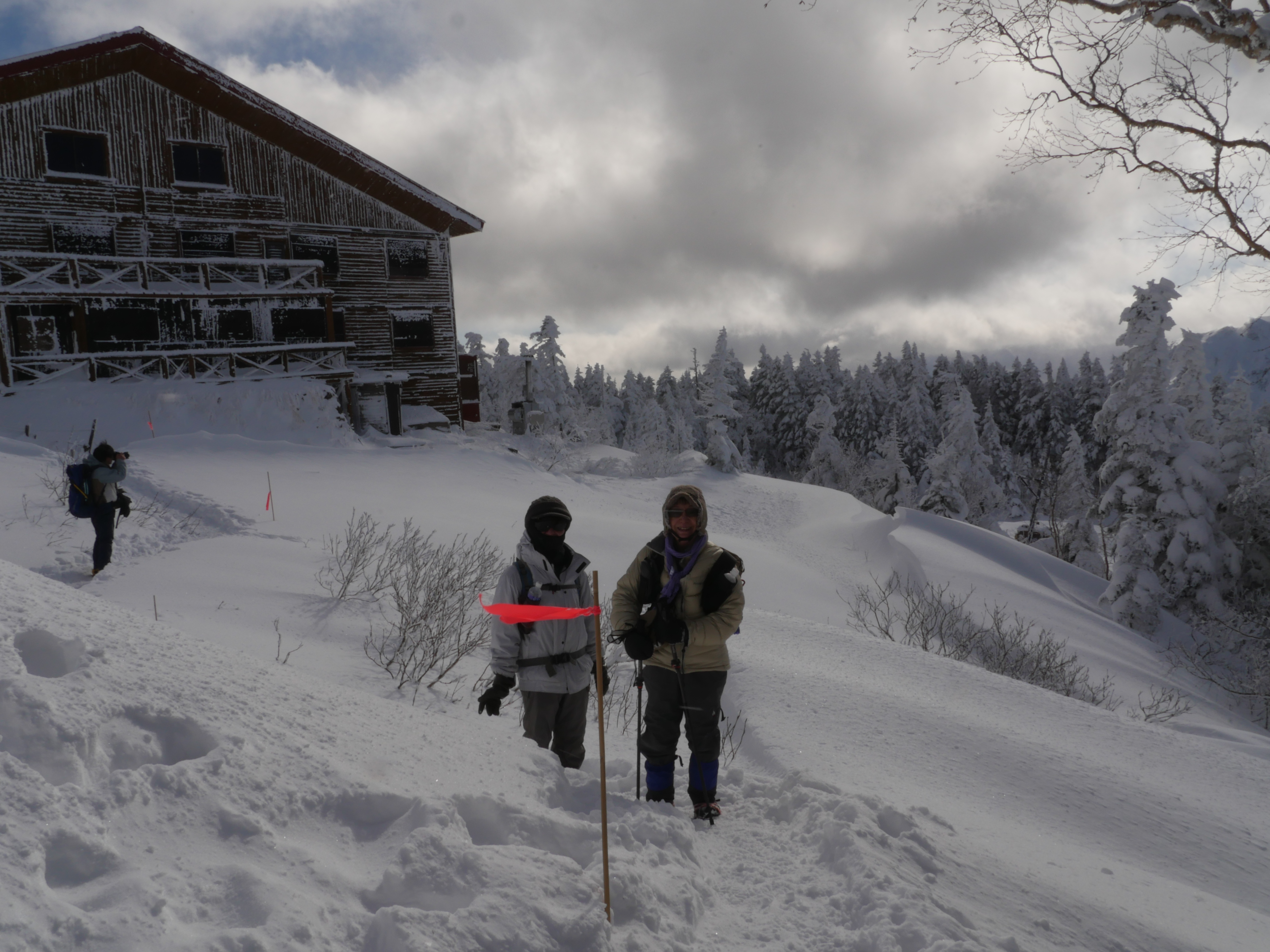 ← 途中、昼食で寄った平湯温泉。空はドンヨリ、その後降雪するという予報に、雪山遊びは諦め気味… ↓ 奥飛騨温泉郷・チロリ庵は静かでこじんまりとした宿。部屋に狭いがお風呂がある。それ以外に内湯がある。さらに3つある露天風呂は貸し切りで使用する方式。3つ全部入ったがなかなか素晴らしい! |